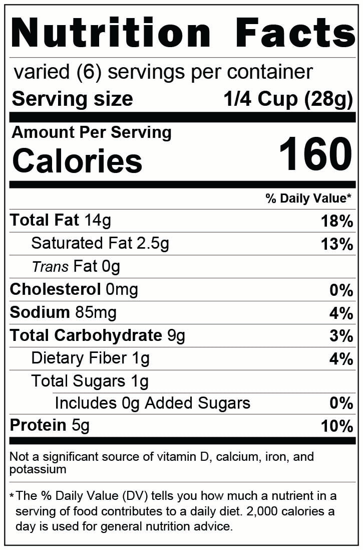 Ingredients: Cashews, Canola Oil, Salt